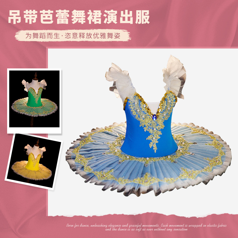 Rok balet anak perempuan Eropa dan Amerika, kostum dansa angsa kecil, pakaian penampilan pettiskirt kain kasa suspender