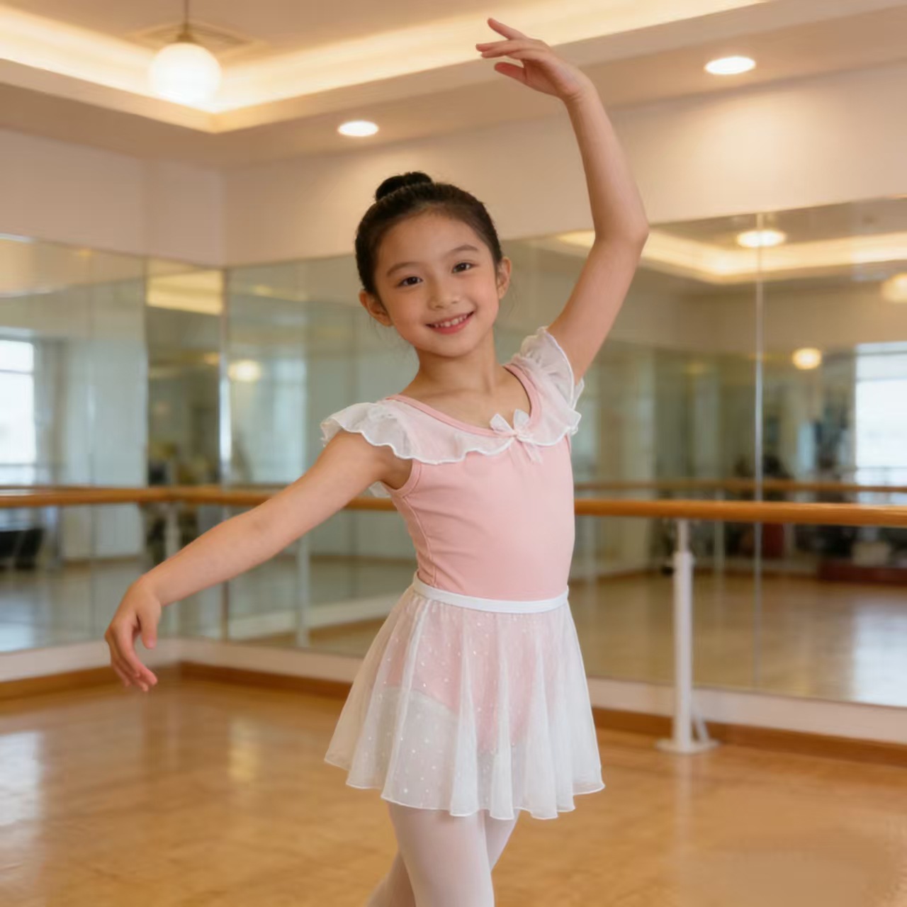 Baju dansa Anak perempuan lengan pendek, baju latihan badan menari, Rok dalam musim gugur dan dingin