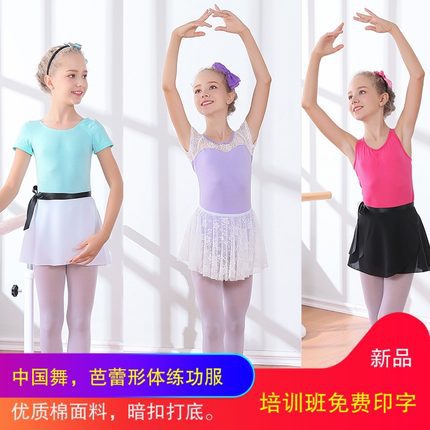 Pakaian Tari Pakaian Balet Lengan Pendek Renda Musim Semi Musim Panas Wanita Pakaian Latihan Tari Tiongkok Anak-anak Pakaian Menari