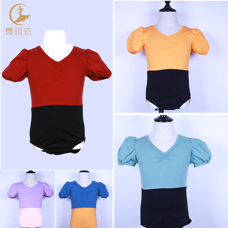 Baju dansa lengan pendek anak-anak musim panas jumpsuit lengan puff balet Prancis pakaian senam tari Cina pakaian dapat disesuaikan