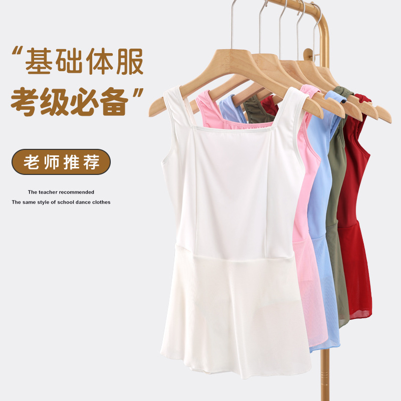 Pakaian Tari Anak-anak Rok Balet Anak Perempuan Tali Tali Bahu Lebar Pakaian Latihan Tingkat Tes Tari Tiongkok Balita Lengan Pendek Musim Panas