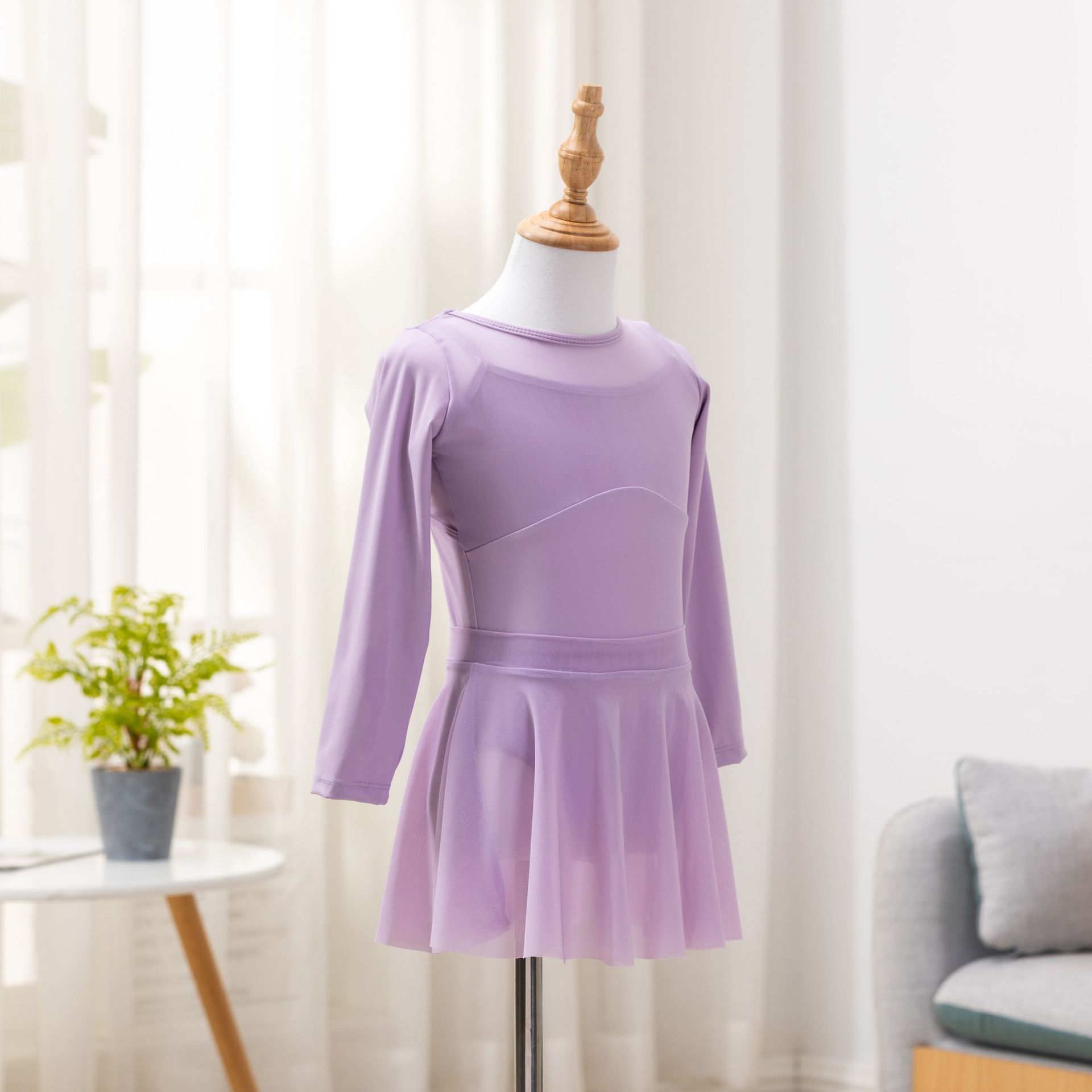 Pakaian dansa anak perempuan, baju latihan Rok dansa musim semi, pakaian penampilan anak-anak, rok balet lengan panjang
