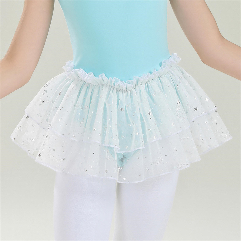 Rok dansa anak perempuan dua lapis, Rok jaring berpayet bintang, pakaian tari China manis, rok balet anak perempuan