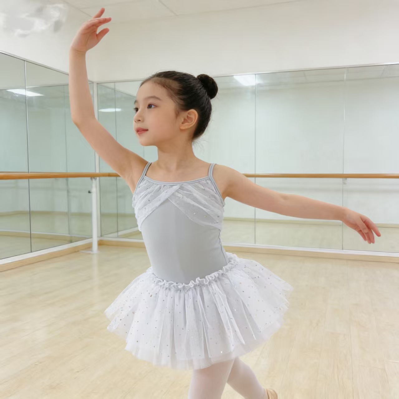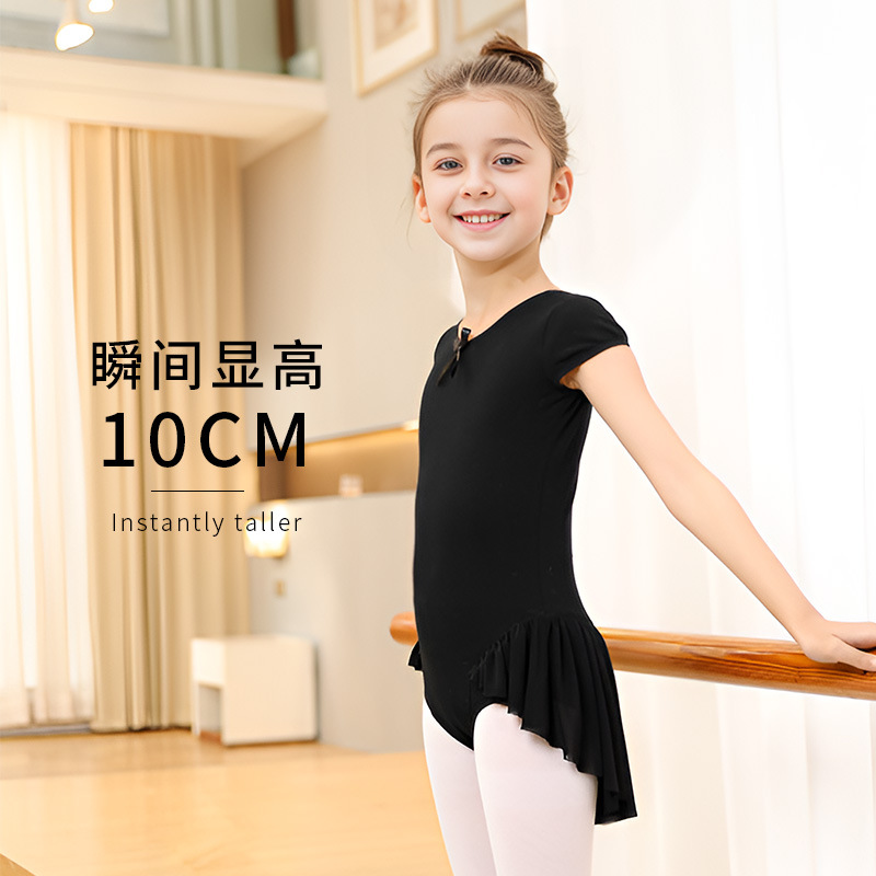 Pakaian latihan dansa anak-anak, baju balet lengan setengah pendek, rok kasa empat lapis, pakaian katun anak perempuan