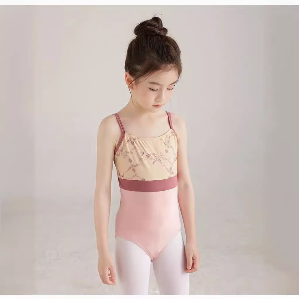Pakaian Tari Anak-anak Pakaian Latihan Tari dan Balet Tiongkok Pakaian Latihan Anak Perempuan Musim Panas Tali Gantungan Baju Senam Olahraga Bentuk Tubuh