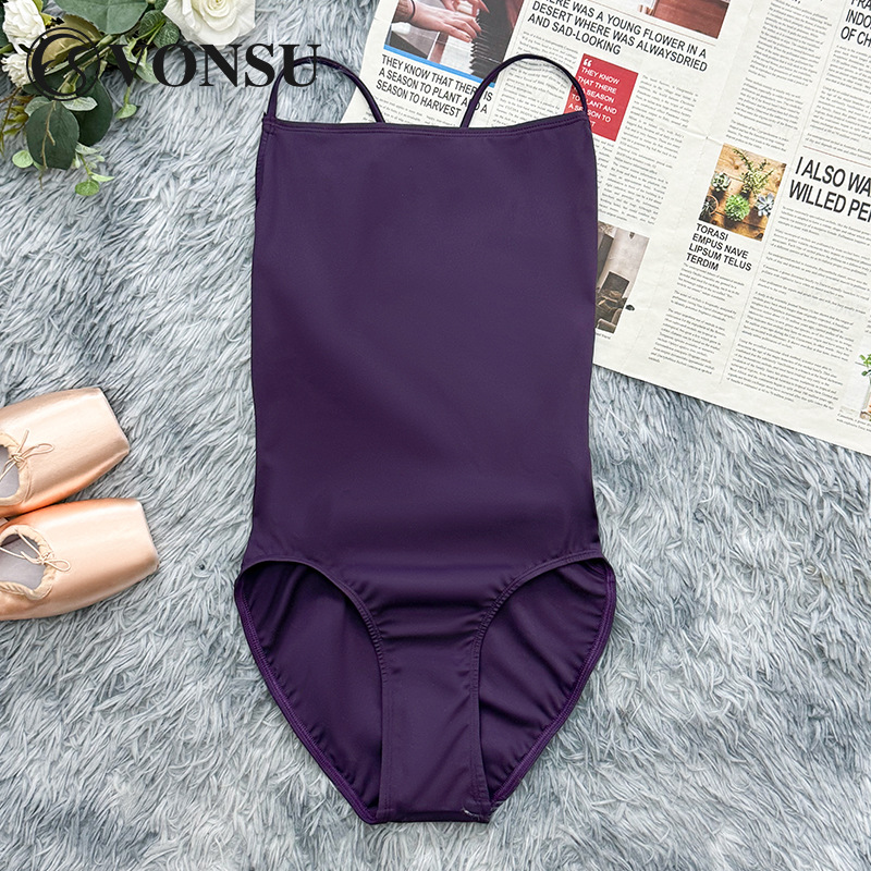 Fanshu Pakaian Latihan Balet Pakaian Olahraga Tari Pakaian Senam Tari Wanita Dewasa Tali Gantung Punggung Terbuka Model Baru Warna Ungu
