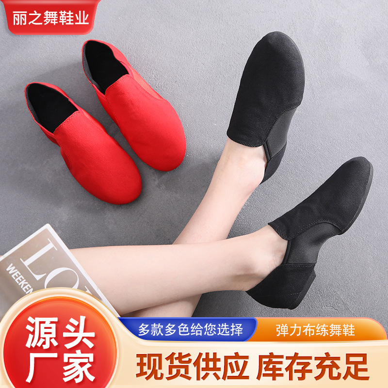 Sepatu dansa balet anak dewasa, sepatu kain elastis, sepatu dansa balet, sepatu latihan yoga, sepatu jazz, sepatu dansa hak rendah