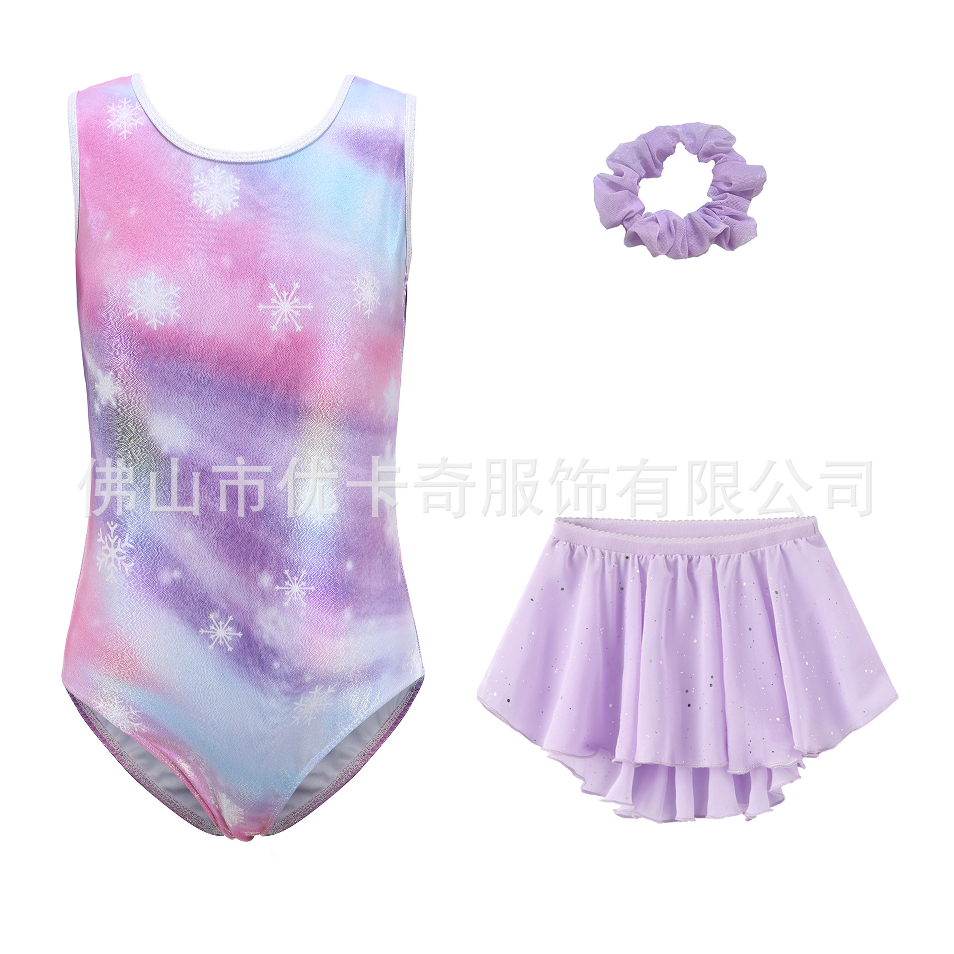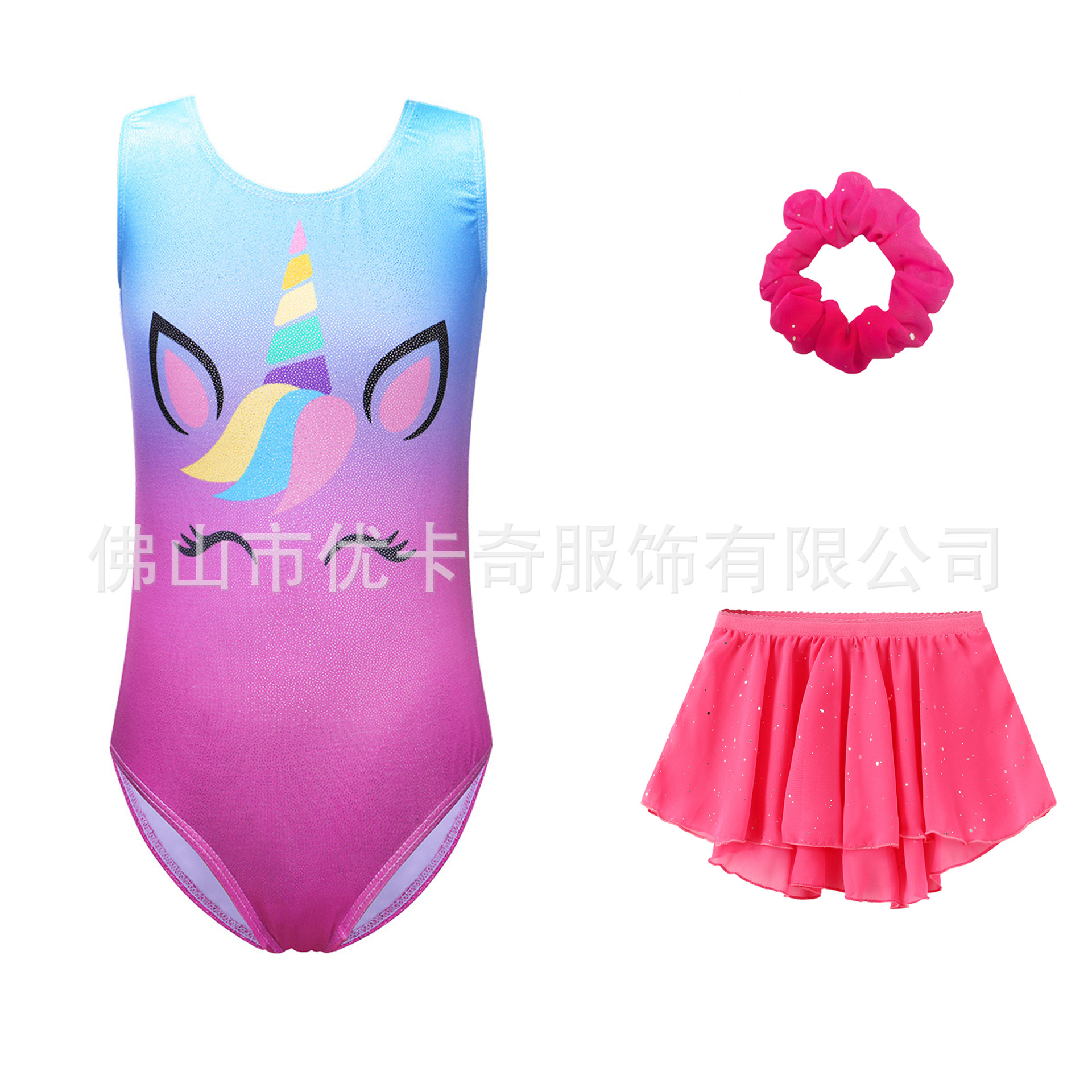 Pakaian Senam Anak Kartun Pakaian Latihan Balet Anak Perempuan Bercat Panas Emas Rok Benang Bunga Kepala Pakaian Tari Tiongkok