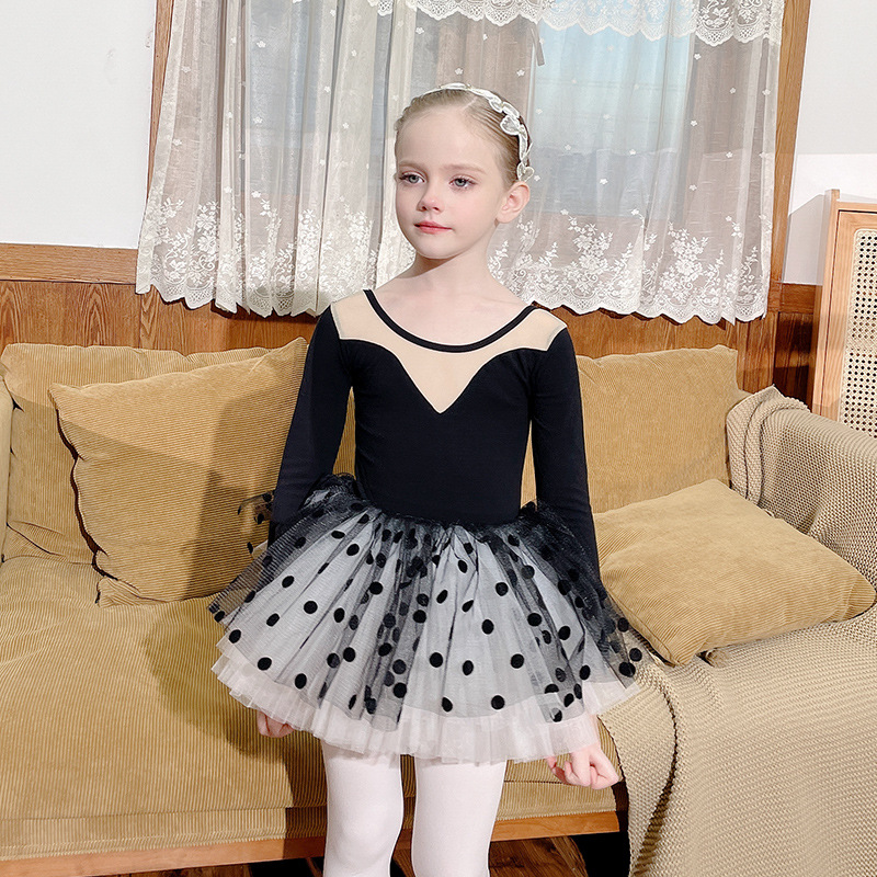 Pakaian dansa anak perempuan, baju latihan anak-anak musim gugur lengan panjang, pakaian dansa katun terbuka satu potong