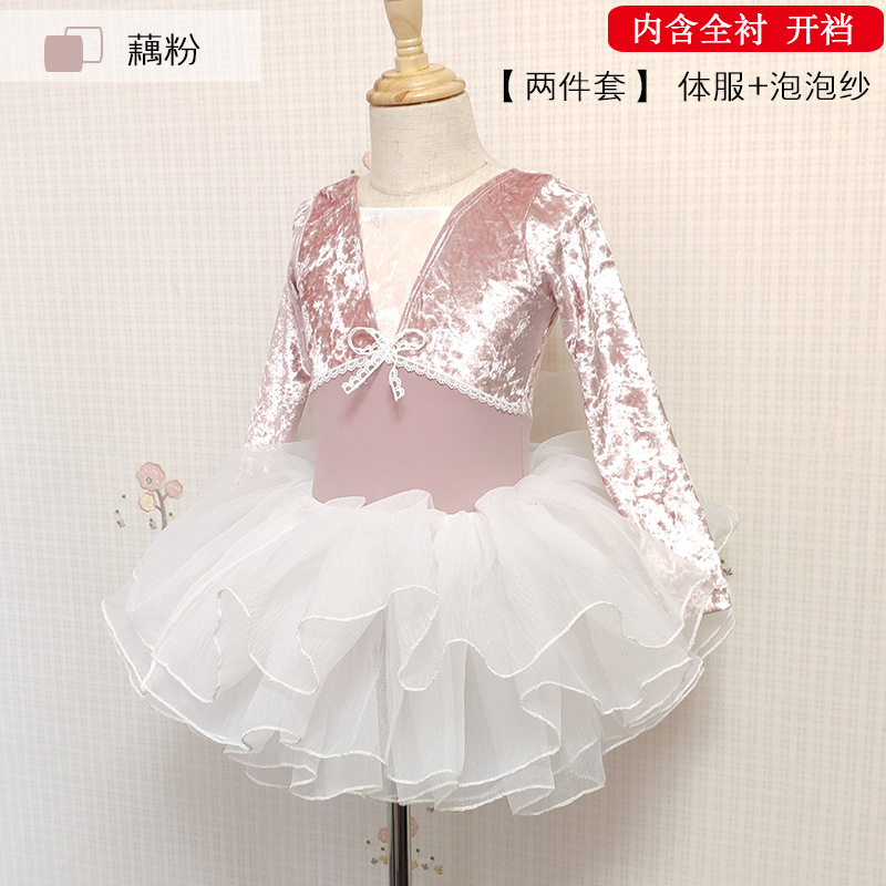 Pakaian dansa anak perempuan, baju latihan lengan panjang musim gugur dan musim dingin, rok balet kelas China Musim Semi dan Musim Gugur