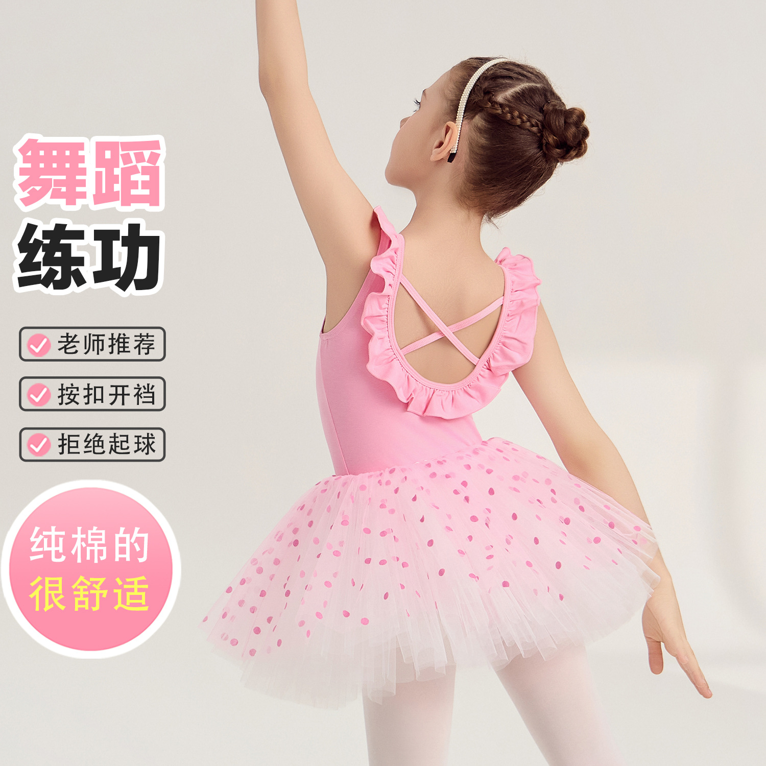 Pakaian Tari Anak-anak Pakaian Latihan Anak Perempuan Tanpa Lengan Musim Panas Rok Benang Balet Balita Warna Pink Katun Murni Pakaian Tari Cina