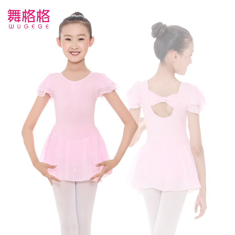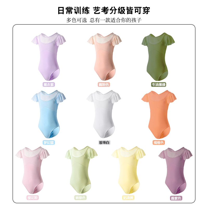 Pakaian dansa anak-anak pakaian latihan baju dansa Cina pakaian anak perempuan lengan pendek musim semi dan musim panas baju balet baju senam