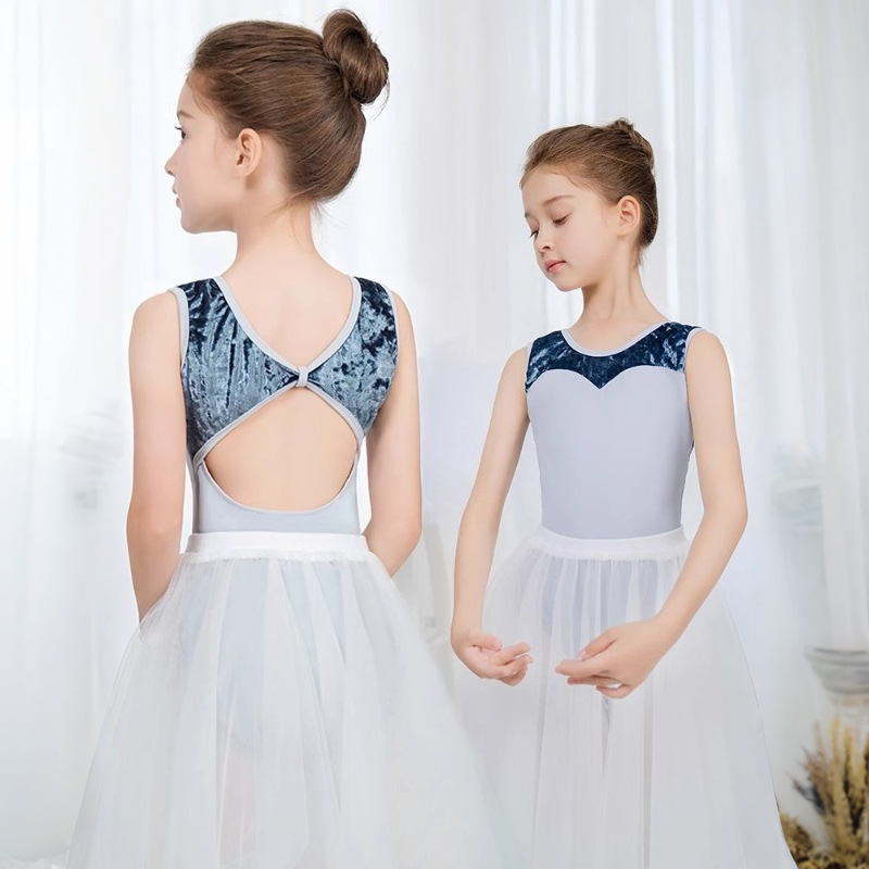 Pakaian tari anak-anak, pakaian latihan tari Tionghoa, pakaian latihan model rompi beludru emas, model baru untuk ujian kelas, pakaian balet anak perempuan.