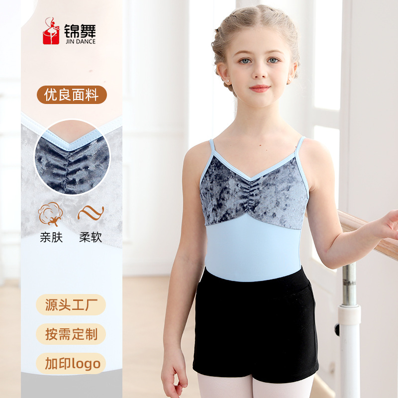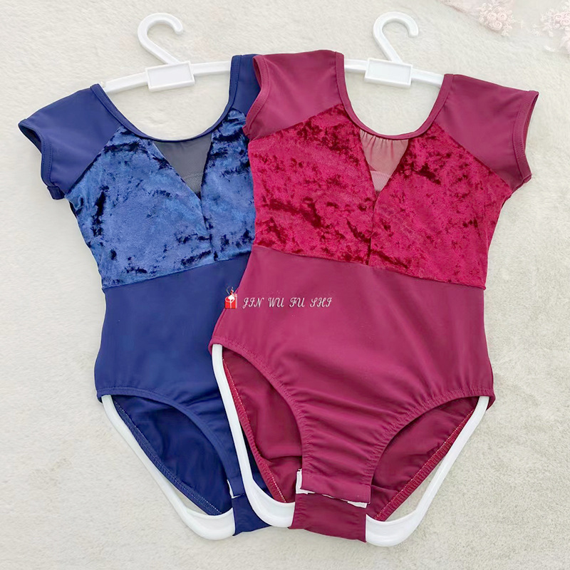 Baju dansa balet anak perempuan, pakaian latihan balet, gesper terbuka, lengan pendek, Beludru, lengan terbang, jaring baru musim panas untuk perempuan