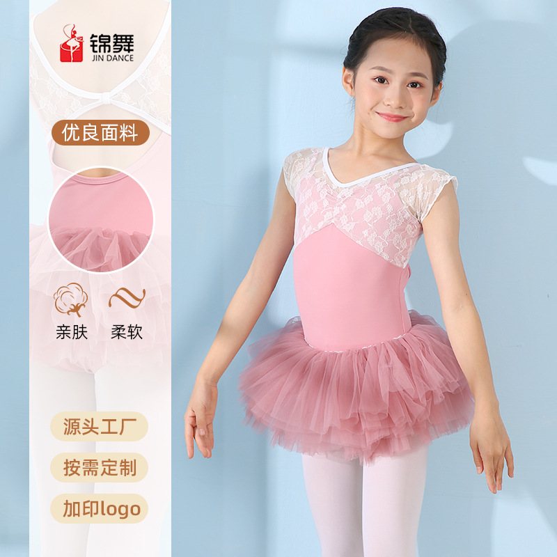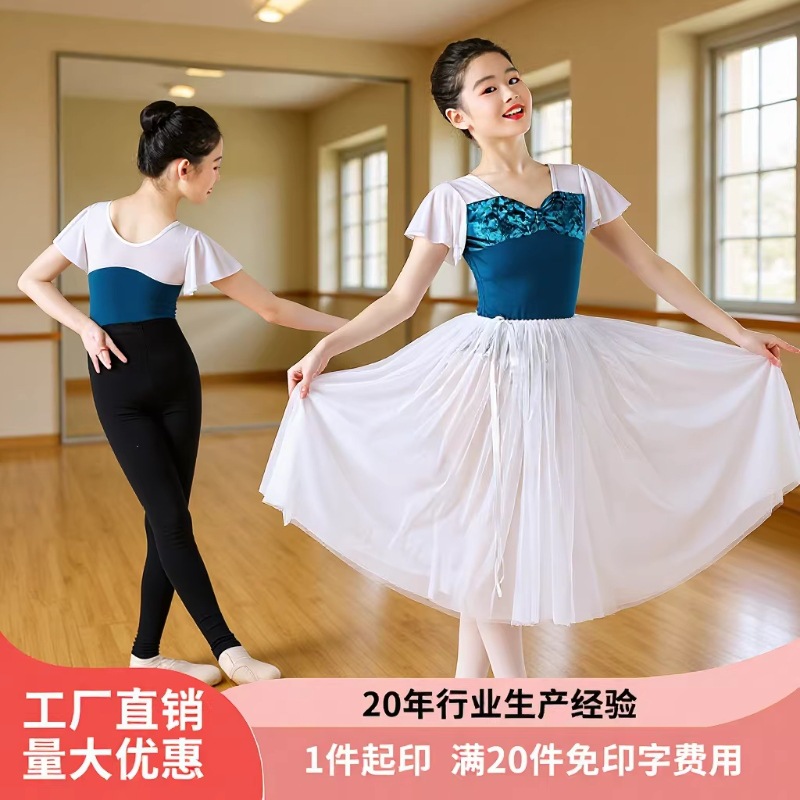 Pakaian dansa Anak perempuan lengan pendek, rok balet anak perempuan pakaian dansa China siswa musim panas