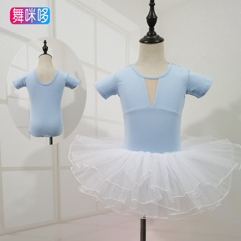 Baju dansa anak perempuan, jumpsuit lengan pendek pakaian latihan musim panas baju badan dansa China nasional rok kasa balet