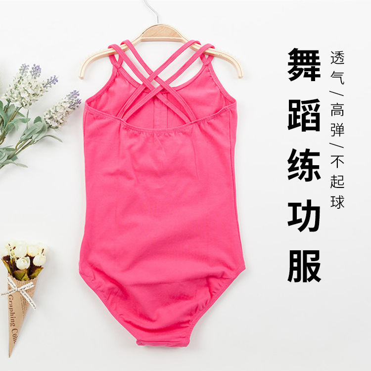 Jumpsuit selempang musim panas anak perempuan tari Cina pakaian latihan tubuh balet gesper terbuka pakaian dansa katun baju gradasi menari