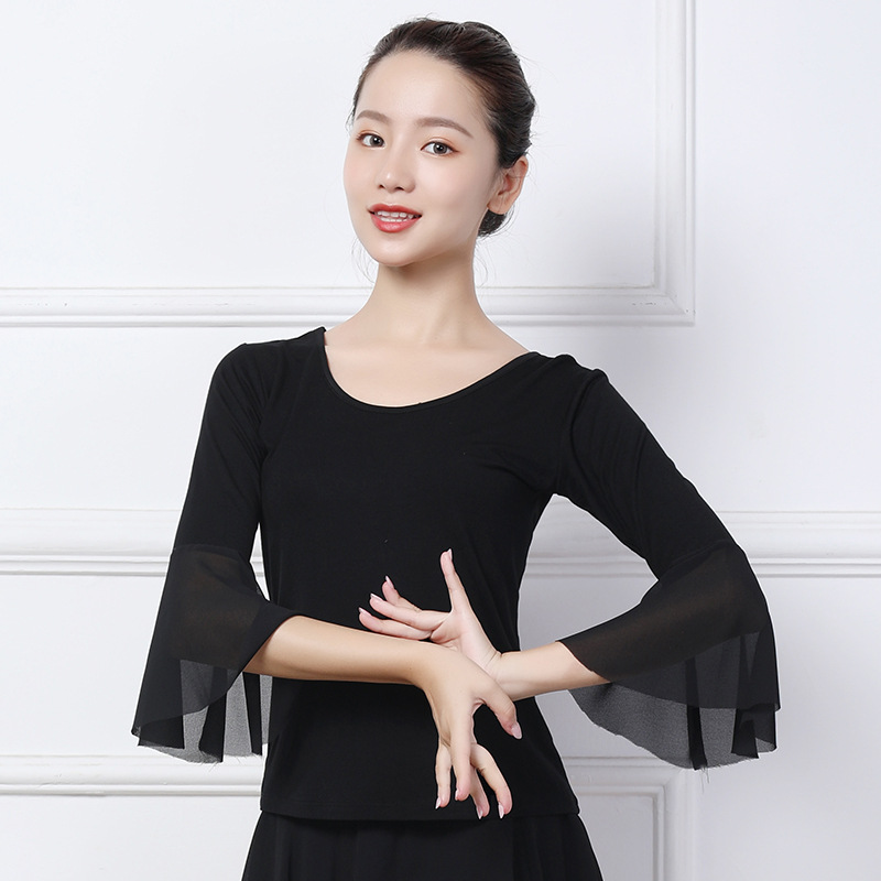 Pakaian latihan tari etnik klasik yoga balet seksi Atasan Wanita kaus Dalaman jaring pakaian latihan penampilan