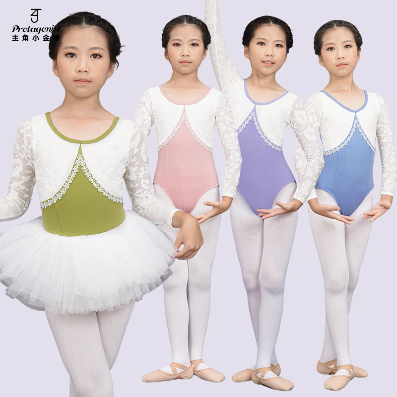 Grosir Pabrik pakaian dansa anak-anak musim semi dan musim panas lengan panjang katun pakaian latihan baju balet anak perempuan jumpsuit dua potong