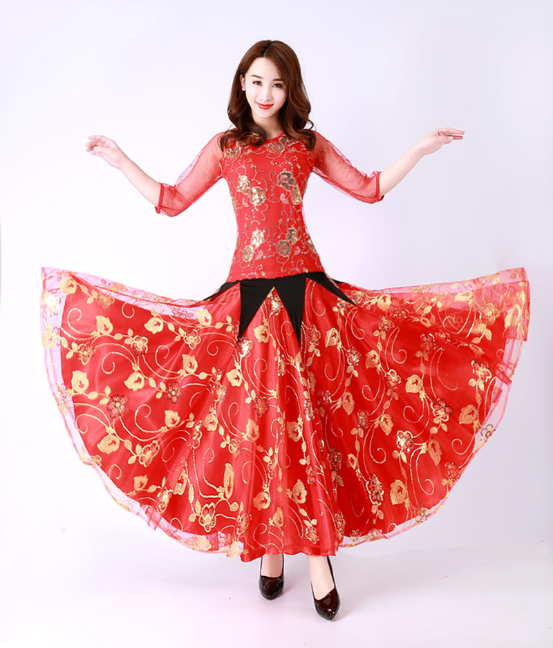 Setelan tari Modern rok ayun dansa ballroom rok tari Waltz rok tango langkah tiga langkah
