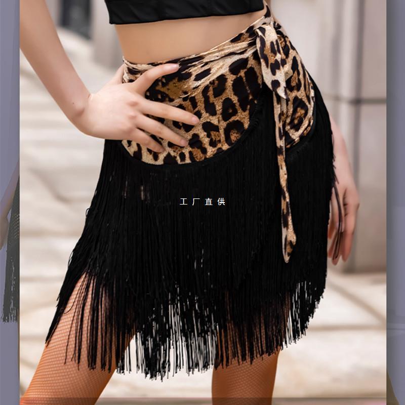 Rok Setengah Badan Tari Rumbai Latin Pakaian Rok Satu Potong Pakaian Latihan Profesional Rok Pendek Wanita Pola Macan Tutul Menari Model Baru Handuk Pinggul