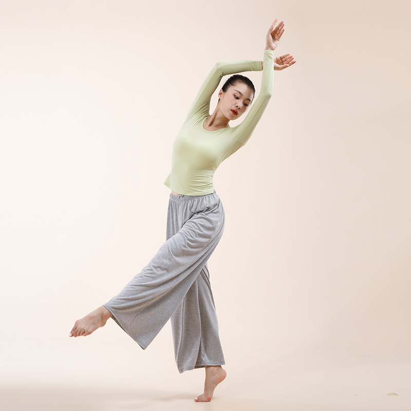 Pakaian latihan dansa musim semi dan musim panas setelan dewasa wanita pakaian badan atasan hitam celana kaki lebar siswa pakaian tari modern Cina
