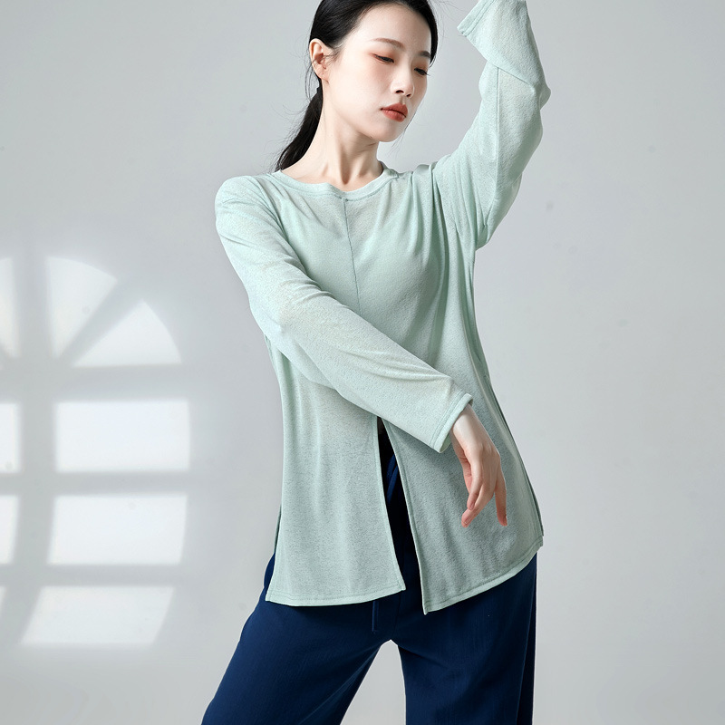 Blus tari klasik wanita, pakaian atasan lengan panjang menari China modern longgar 2024