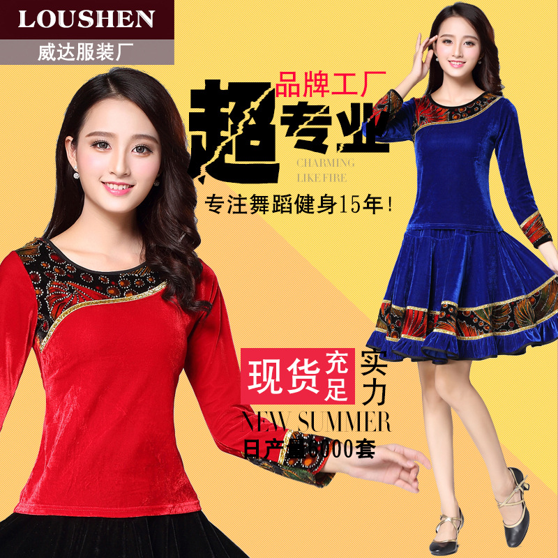Luo pakaian dansa persegi untuk wanita, pakaian dansa atasan lengan panjang bahan beludru emas warna baru musim gugur dan musim dingin, pakaian dansa penampilan untuk wanita