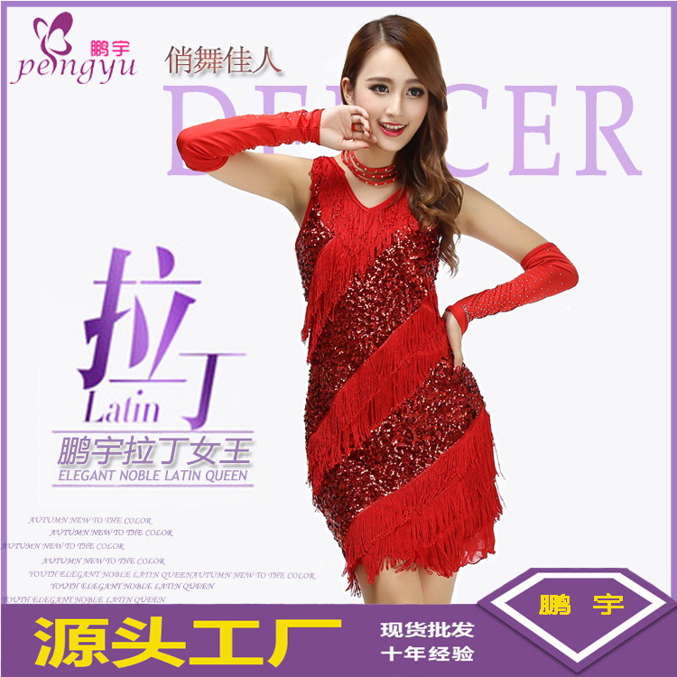 Pakaian dansa Latin dewasa, pakaian pertunjukan rumbai berpayet ramping kerah V Ganda 11 #