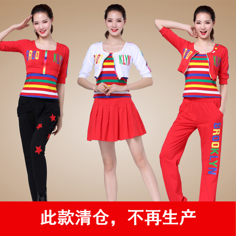 Tingzimei baju dansa persegi wanita, setelan baru olahraga katun tiga potong pakaian performa kompetisi kebugaran musim semi dan musim panas 2020