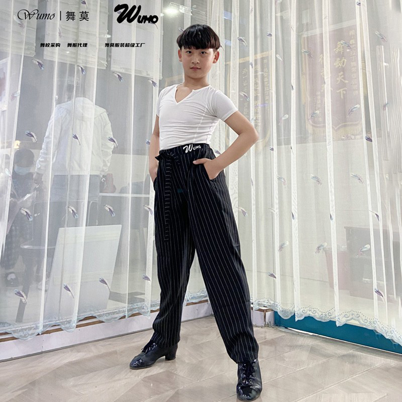 Pakaian dansa pria, pakaian latihan tari Latin, celana Latin musim panas untuk anak laki-laki