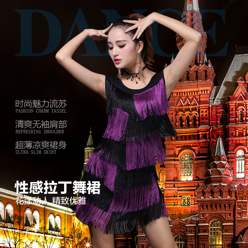 Tianchao pabrik Ji tari langsung gaun rumbai tari Latin gaun leher bulat baju dansa pakaian latihan untuk wanita