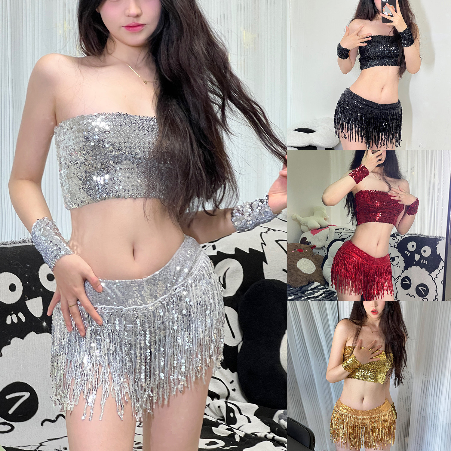 699 # Rok Payet Rok Rumbai Rok Tari Latin Pakaian Pertunjukan Panggung ds Celana Pendek Wanita Payet Rumbai Pakaian Pertunjukan Bar