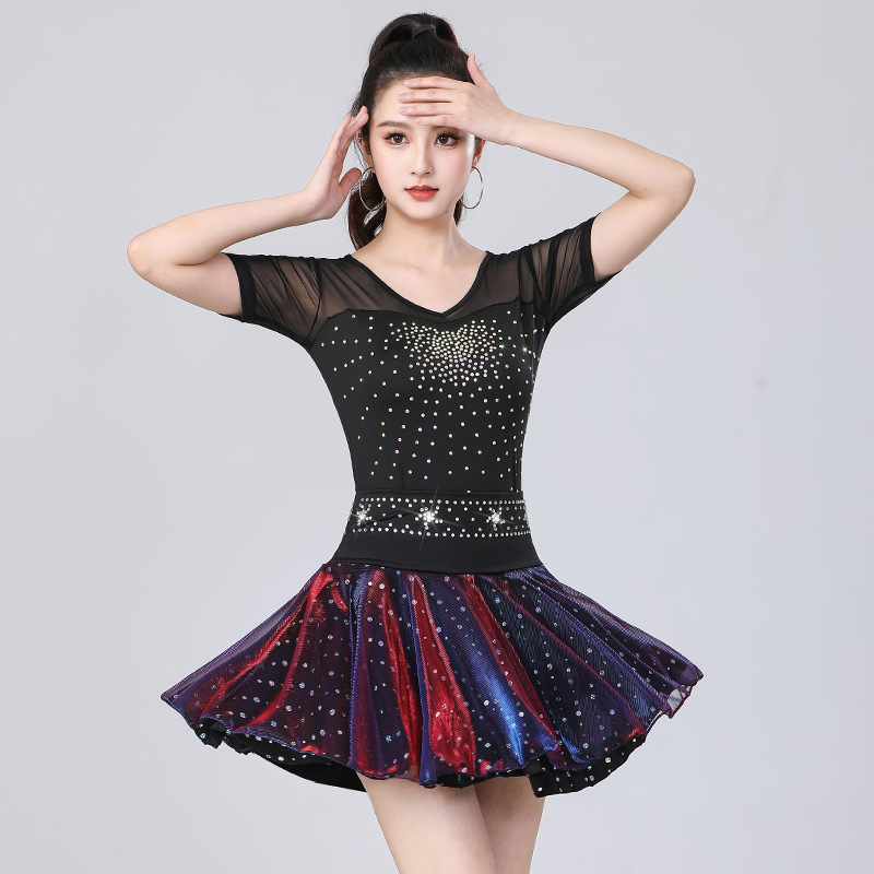 Jiteba Baju Atasan Lengan Pendek Berlian Panas Model Baru Pakaian Dansa Latin Set Pakaian Dansa Plaza Rok Pendek Menari Tiga Langkah