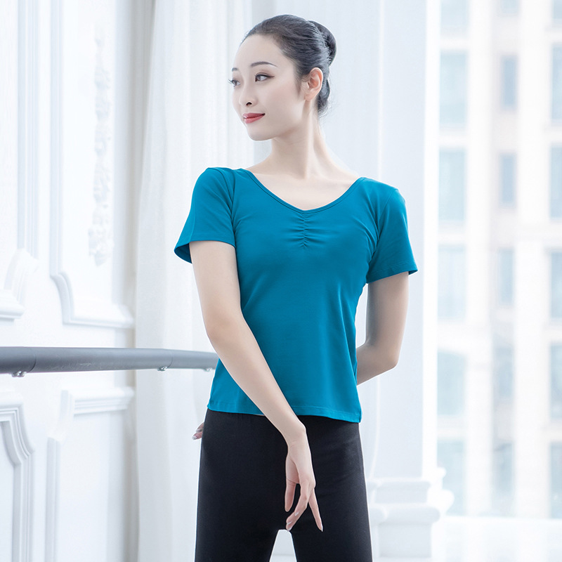 Atasan pakaian dansa wanita, baju Luaran latihan balet lengan pendek badan dewasa