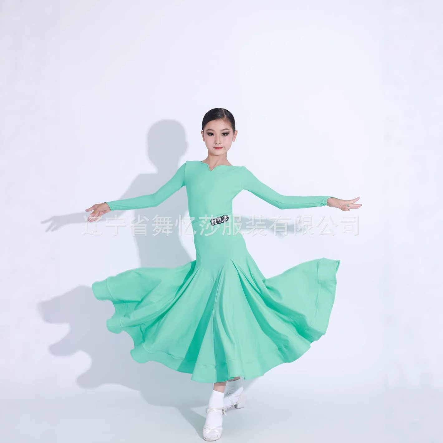 Baju dansa persegi kerah tinggi, baju dansa standar nasional, pakaian latihan dansa, pakaian dansa ballroom, lengan panjang, bendera