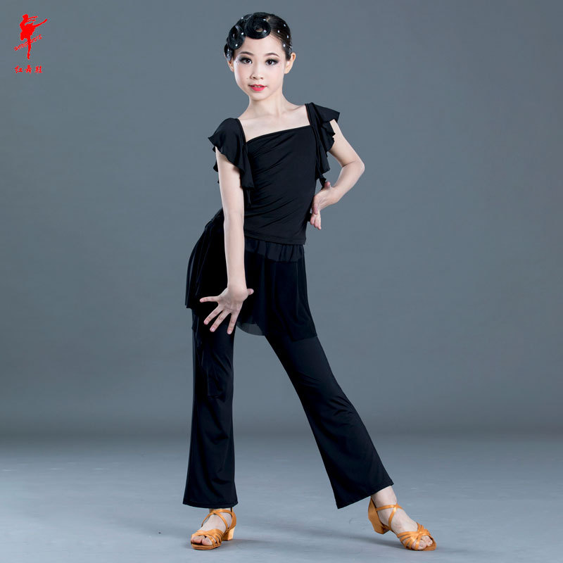 Sepatu dansa merah lengan renda sutra susu atasan selempang baju Latin anak grosir ramping untuk latihan menari 3918