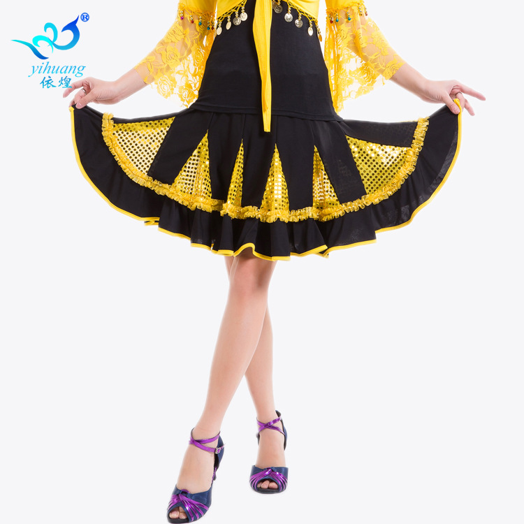 Rok dansa Latin rok payet rok latihan pakaian pertunjukan rok dansa ballroom pakaian panggung Tim