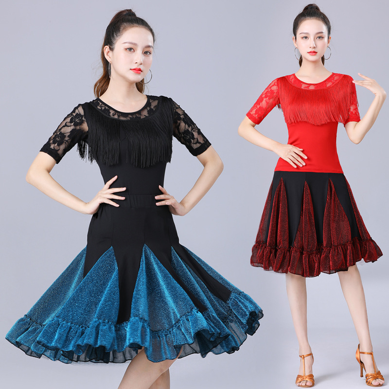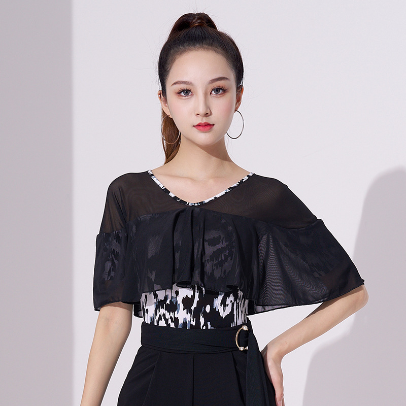 Baru pakaian dansa Latin Atasan wanita menari dewasa pakaian tari mesh ruffled pakaian latihan Semua cocok lengan pendek
