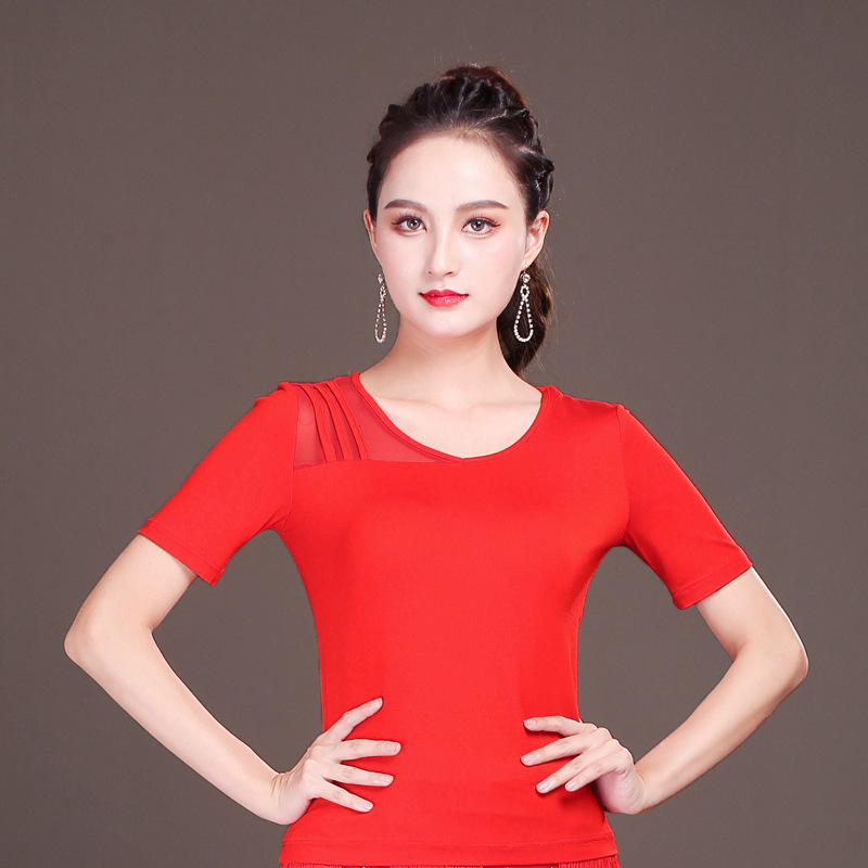 2022 baru modal top dansa Latin lengan pendek persegi pakaian dansa musim panas baru pakaian dansa