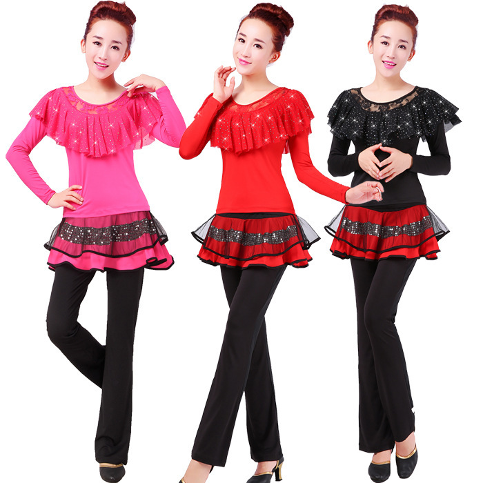 Pakaian dansa persegi atasan lengan panjang, pakaian dansa Yunshang Yang Yi atasan lengan panjang baru musim panas 2016 pakaian penampilan usia sedang dan lama