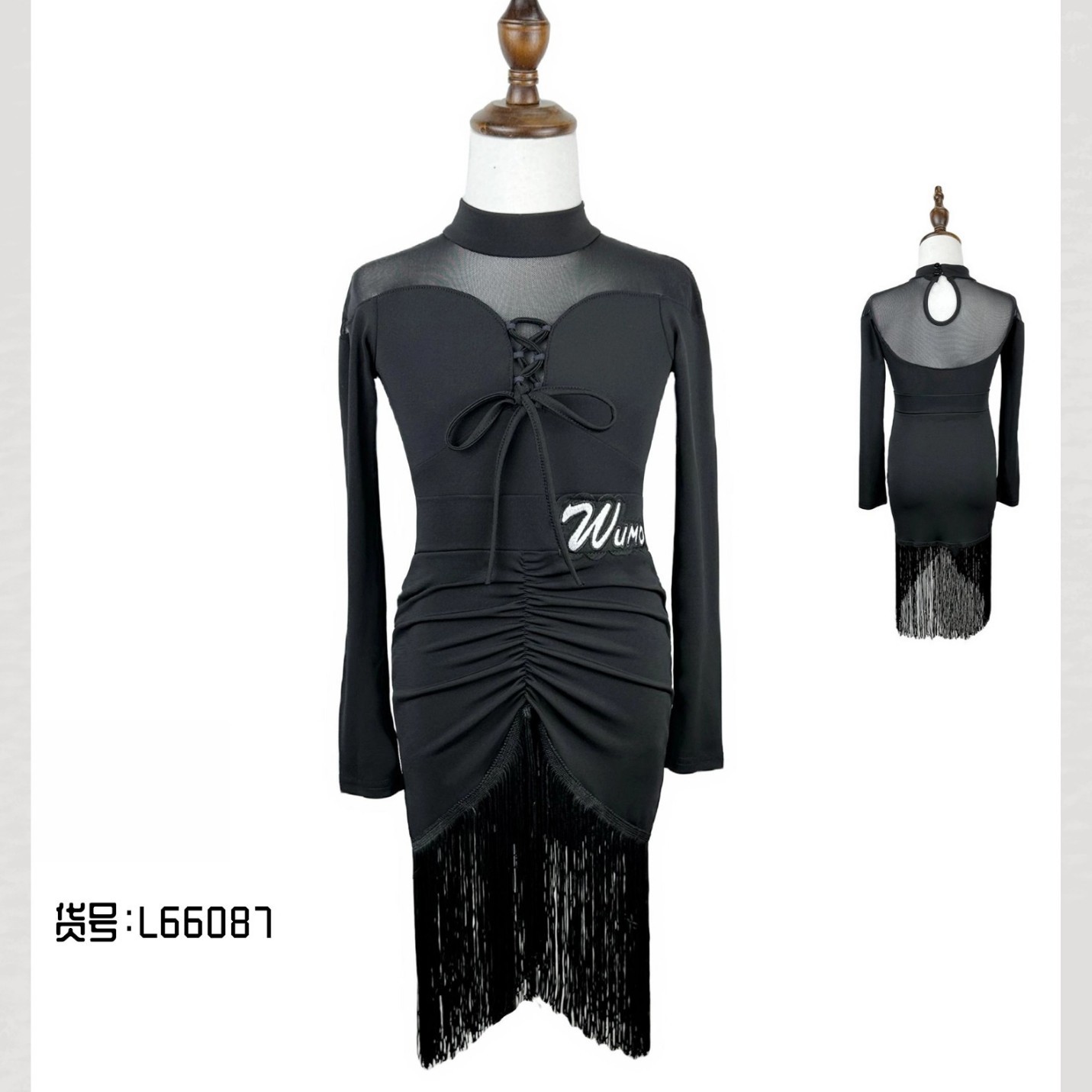 WUMO Pakaian Latihan Latihan Tari Latin Profesional Anak Perempuan Model Baru Pakaian Latihan Pakaian Rumbai Lengan Panjang Model Musim Gugur dan Musim Dingin