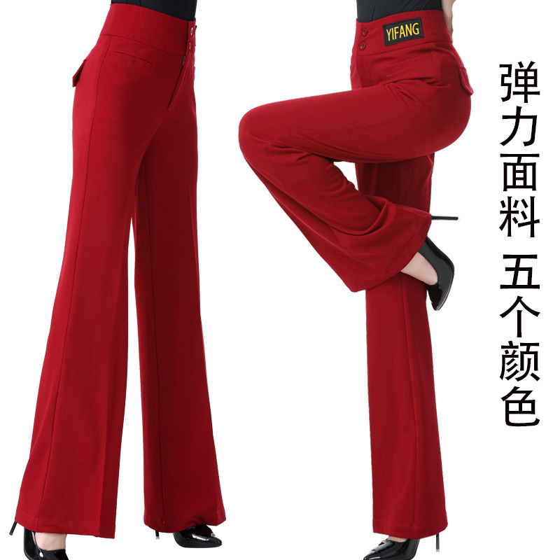Celana dansa Modern wanita, celana panjang longgar, celana tari Latin, celana kaki lebar, celana dansa standar nasional, pinggang tinggi, celana dansa Modern