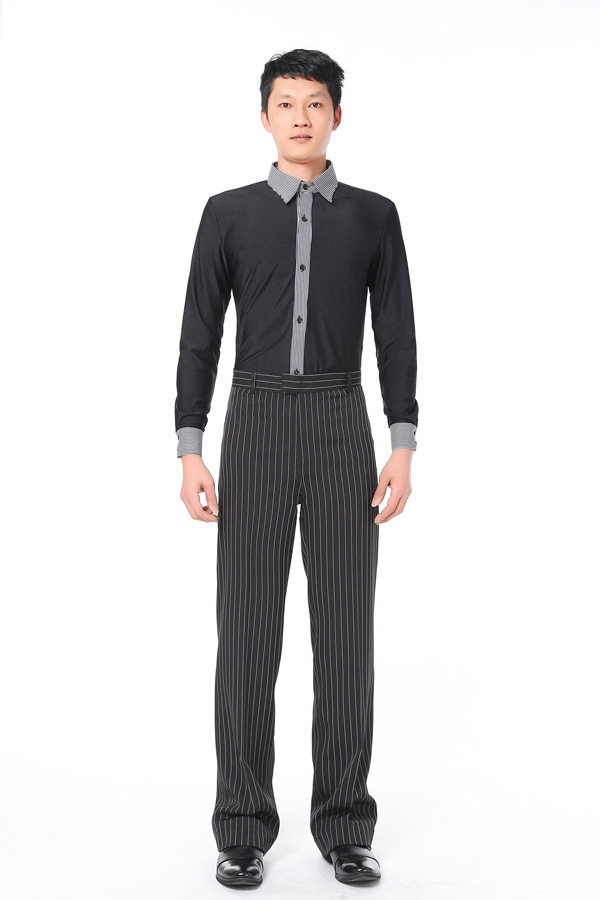 Pakaian dansa Latin pria, pakaian kompetisi standar nasional tari sosial bergaris lengan panjang