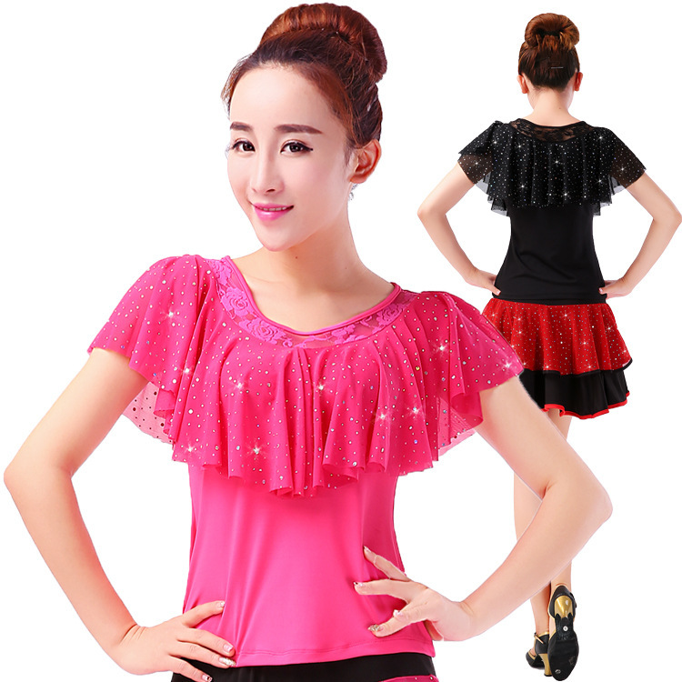 Baju dansa Latin lengan pendek, pakaian menari model atasan dansa Latin baru musim panas 2021