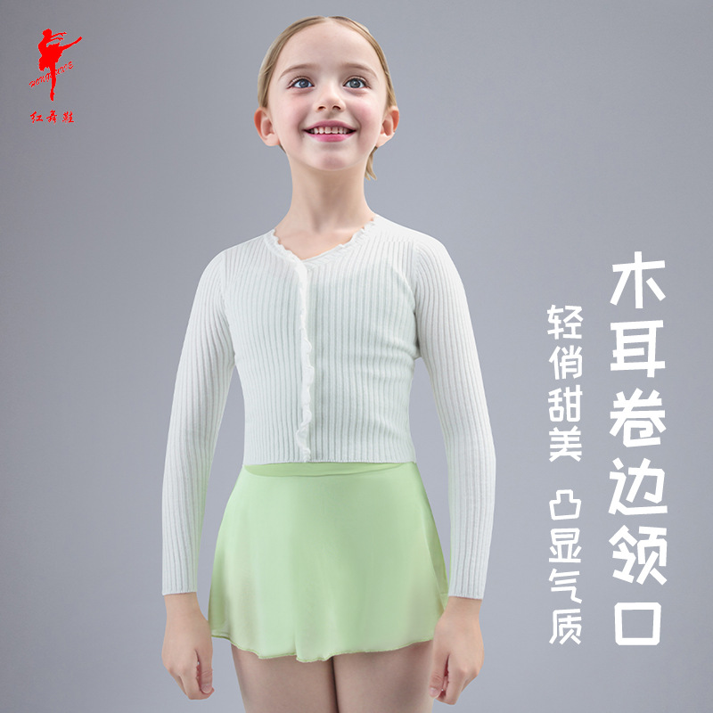 Sepatu Tari Merah Sweater Latihan Putih Anak-anak Pakaian Latihan Rajutan Musim Gugur dan Musim Dingin Pakaian Tari Balet 3445