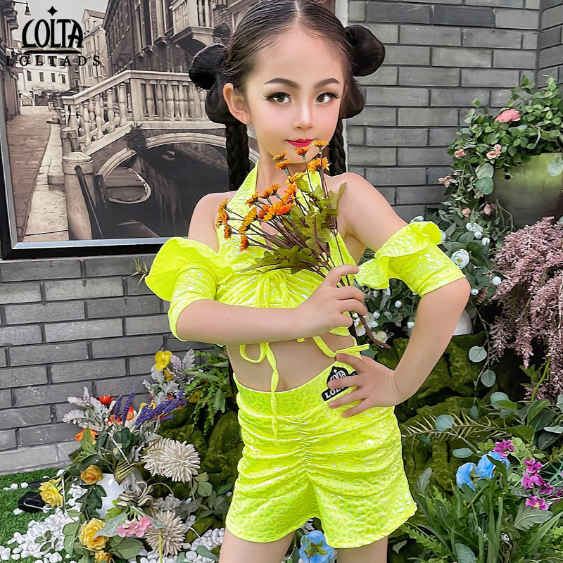 Pakaian latihan dansa anak-anak, kostum penampilan anak-anak, pakaian latihan dansa Latin anak perempuan musim semi dan musim panas