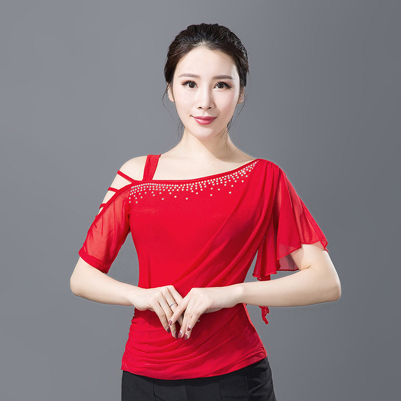 Pakaian catwalk tari tubuh Klasik Latin modern dewasa baru musim semi dan musim panas setelan baju latihan atasan jala wanita dewasa