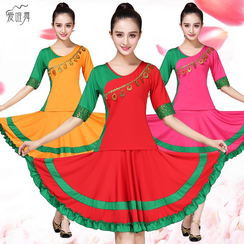 Pasokan langsung dari pabrik pakaian dansa persegi baru pakaian tari Latin pakaian pertunjukan panggung lengan lonceng