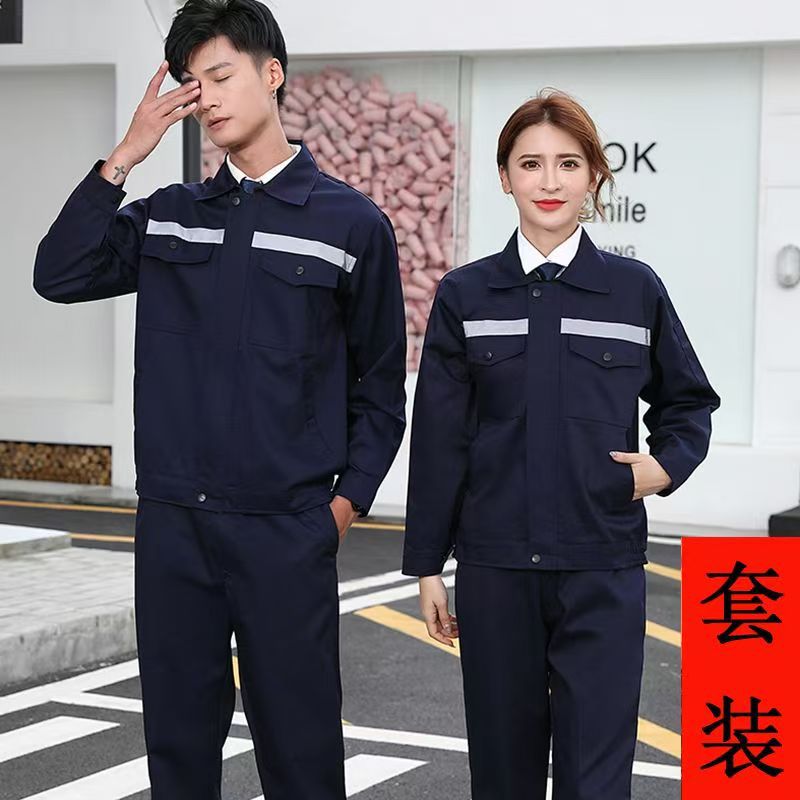 Set pakaian kerja poliester berkualitas penuh, seragam kerja lengan panjang untuk musim semi dan gugur, seragam teknik, seragam sanitasi dan perbaikan otomotif.